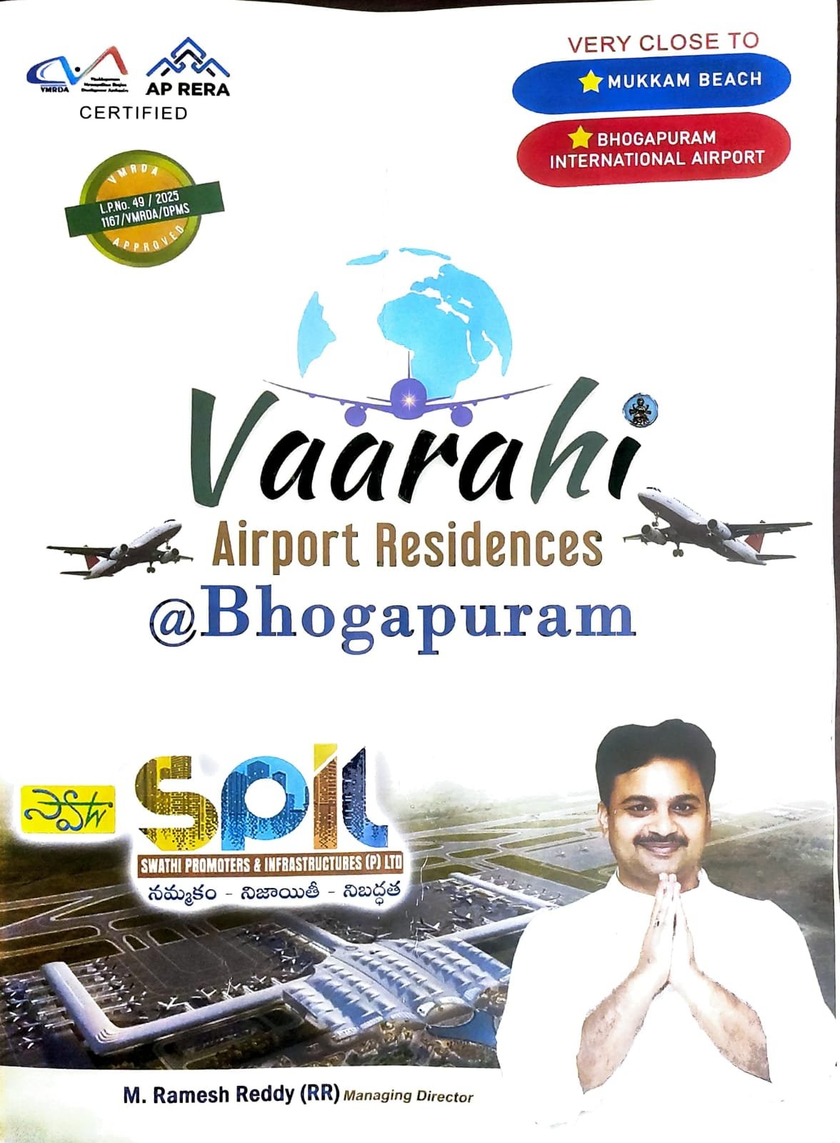 Swathi Vaarahi Airport Residences is a Under Construction project by Swathi Promoters & Infrastructures Pvt. Ltd. in Bhogapuram Visakhapatnam, offering Plot configuration. Below are the key details of Swathi Vaarahi Airport Residences.